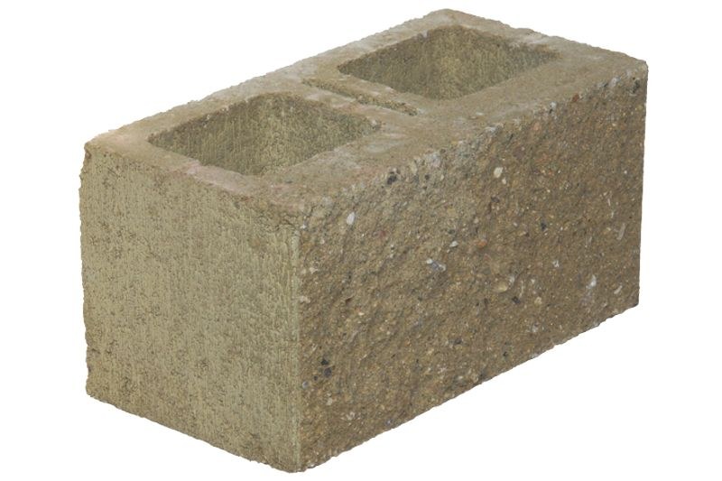 Tvarovka oboustranně štípaná dělitelná - plotová o rozměrech 195 x 190 x 390 mm.