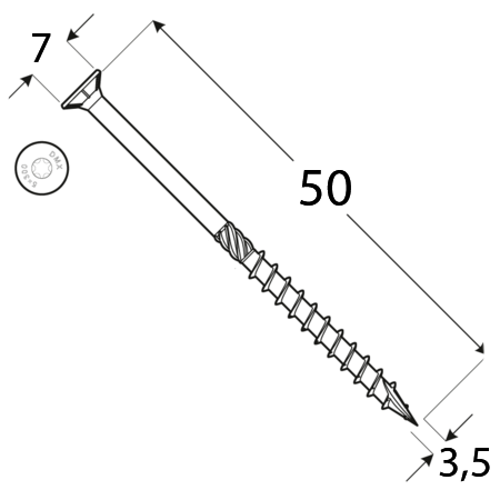 Spojovací materiály Vruty a šrouby Vruty Tesařské Zápustná hlava » Vrut tesařský se zap. hlavou 3,5x50