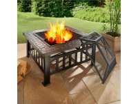 Použitá ocel snadno odolá teplotám až 600 °C a ochranné síťové víko vás chrání před jiskrami. Včetně grilovacího roštu (51 x 51 cm) a pohrabáče s dřevěnou rukojetí (41 cm). Na dřevo či dřevěné uhlí.
