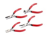 Sada mini kleští (110mm) v praktickém uzavíratelném pouzdře, obsah sady: kombinované, radiové, boční a čelní štípací kleště, pogumované rukojeti, pro jemnou dílenskou práci.